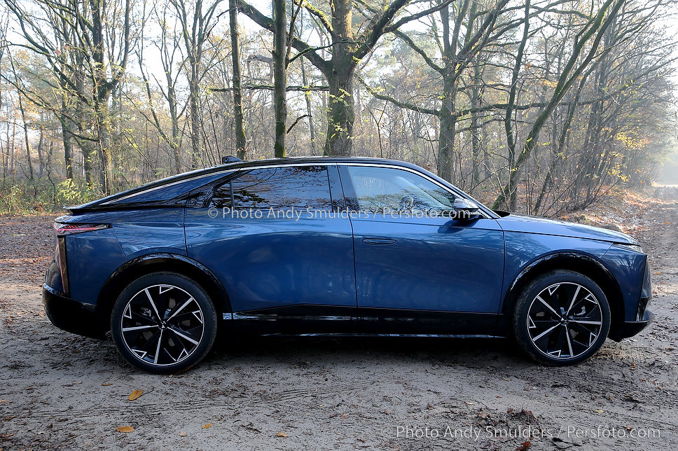 Een bijzonder detail is de laadpoort, in plaats van naar links, opent de klep naar boven. Dat is slim voor bescherming tegen regen en opspattend water, maar maakt het aansluiten van de laadkabel in het donker meteen een stuk lastiger. Het donkere vlak waarin de poort zich bevindt, creëert een bijna mysterieuze uitstraling, maar vraagt wel wat extra precisie bij het laden.