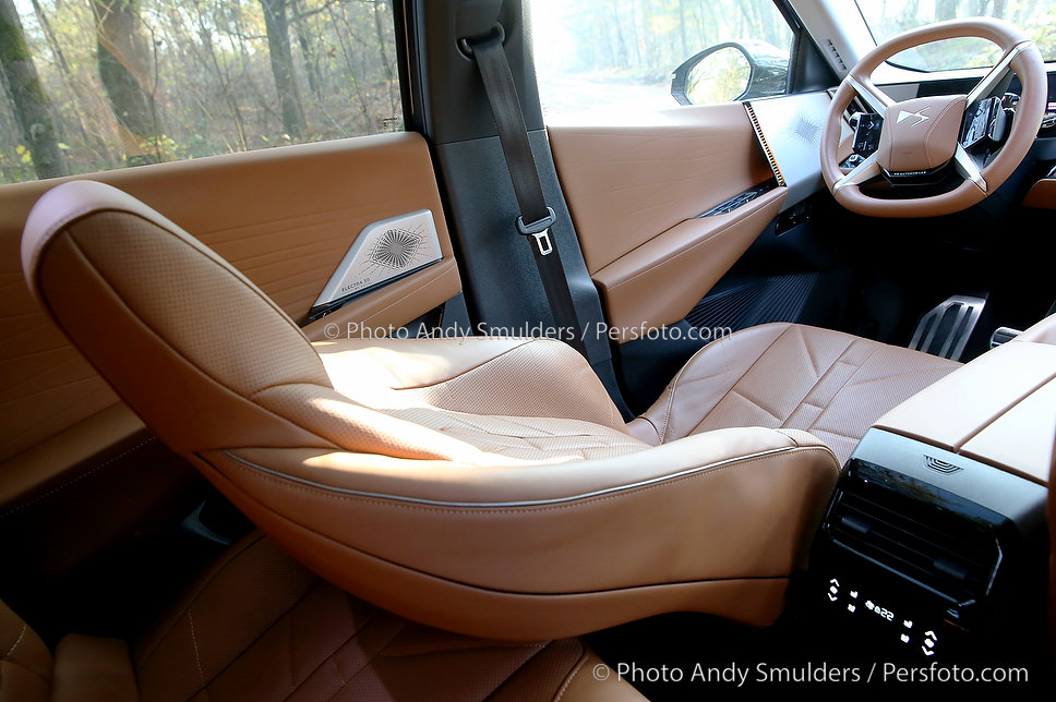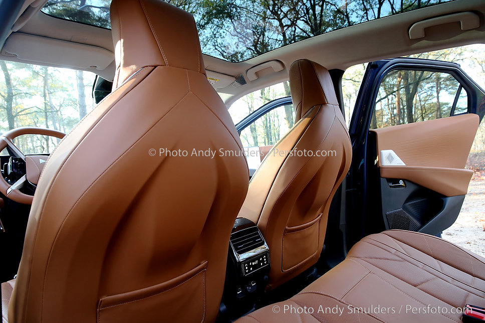 De rijervaring zelf is… comfortabel, maar met nuances. In sportstand voelt de auto iets te hard afgeveerd, in comfort stand juist wat zacht. Toch maakt de Actieve Camera Scan Suspension in combinatie met de one-pedal mode, dat je lekker ontspannen blijft rijden, ook al is de wegligging niet direct “superieur sportief”.