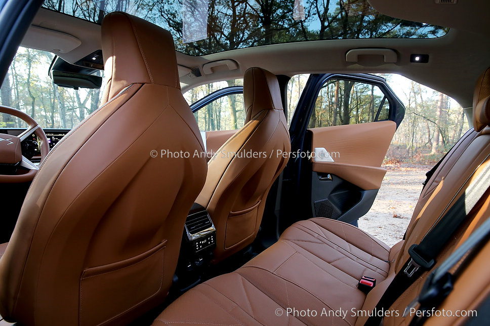 Het interieur van de DS N°8 straalt direct luxueuze verfijning uit. Hoogwaardig leder, stoelen met massage-, verwarmings- en koelfunctie en de subtiele nekverwarming geven een gevoel van comfort dat je van Citroën gewend bent. Het glazen panoramadak voegt luchtigheid toe, al zou een verduisteringsfunctie welkom zijn. Slimme details zoals de gekoelde armsteun laten zien dat DS ook aan kleine comfort wensen heeft gedacht, al zijn de bekerhouders voor wat laag en diep geplaatst, waardoor grotere thermosbekers minder goed passen en net niet onder de armsteun kunnen worden geplaatst.