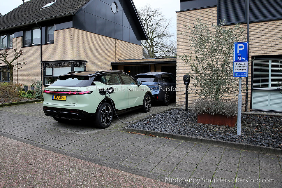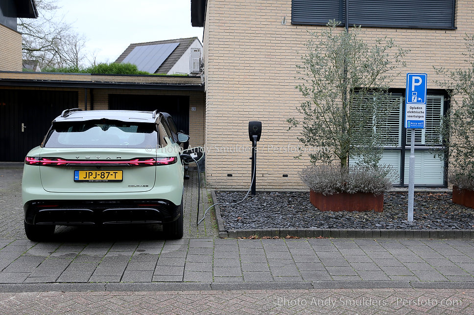 16-12-2025 VOYAH COURAGE RWD Business Edition E-SUV De Voyah Courage RDW Business Edition is een luxe elektrische SUV met achterwielaandrijving (RWD) en 292 pk, die concurreert met modellen als de Tesla Model Y, Hyundai IONIQ 5 en Kia EV6. Op de foto de auto aan een Zaptec Pro Openbare Laadpaal aan het opladen. Copyrights Foto Andy Smulders / Persfoto.com