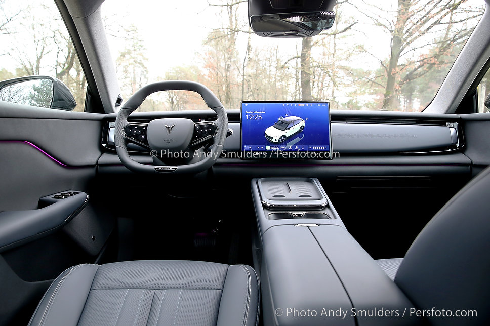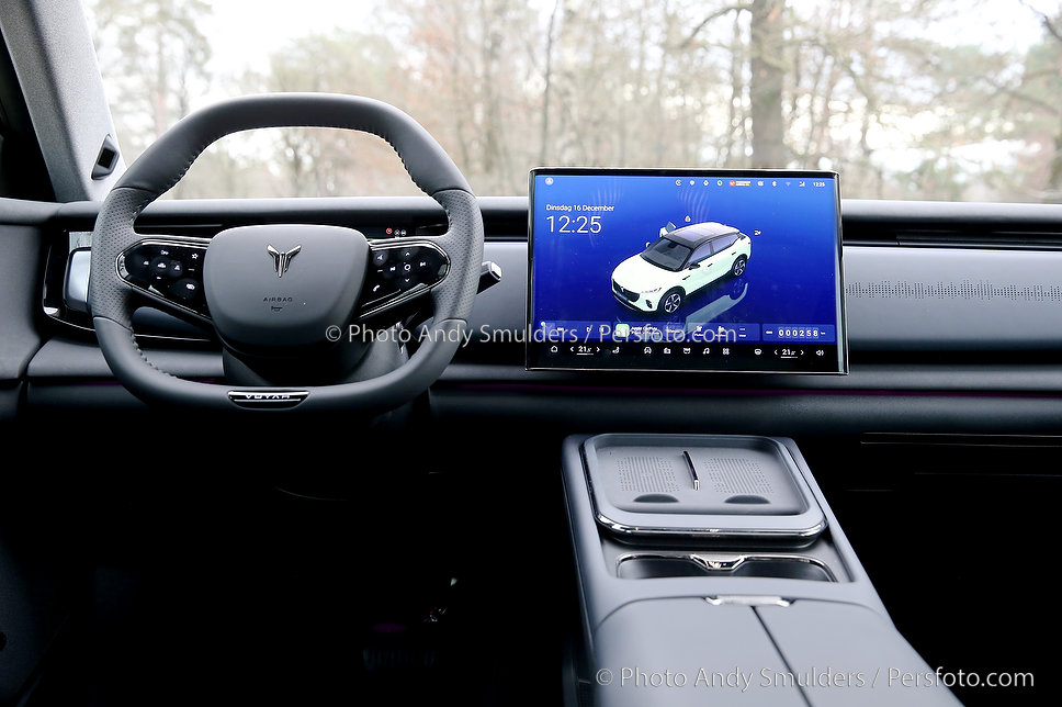 16-12-2025 VOYAH COURAGE RWD Business Edition E-SUV De Voyah Courage RDW Business Edition is een luxe elektrische SUV met achterwielaandrijving (RWD) en 292 pk, die concurreert met modellen als de Tesla Model Y, Hyundai IONIQ 5 en Kia EV6. Op de foto het Interieur van de auto met het kleine display achter het stuur. Copyrights Foto Andy Smulders / Persfoto.com
