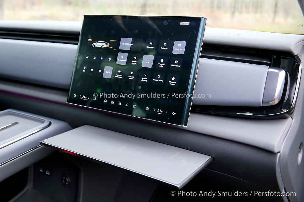 16-12-2025 VOYAH COURAGE RWD Business Edition E-SUV De Voyah Courage RDW Business Edition is een luxe elektrische SUV met achterwielaandrijving (RWD) en 292 pk, die concurreert met modellen als de Tesla Model Y, Hyundai IONIQ 5 en Kia EV6. Op de foto het Interieur van de auto met het scherm in Cinema mode met uitklapbaar tafeltje. Copyrights Foto Andy Smulders / Persfoto.com