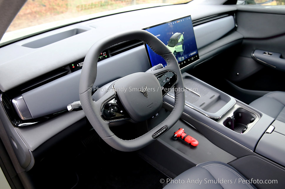 Het stuur voelt stevig aan, met een aangename tegendruk die de bestuurder meer controle biedt dan veel lichtere concurrenten.