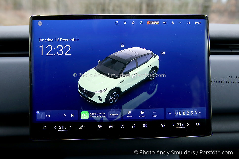 16-12-2025 VOYAH COURAGE RWD Business Edition E-SUV De Voyah Courage RDW Business Edition is een luxe elektrische SUV met achterwielaandrijving (RWD) en 292 pk, die concurreert met modellen als de Tesla Model Y, Hyundai IONIQ 5 en Kia EV6. Op de foto het Interieur van de auto met het 15,05 inch OLED curved display, Copyrights Foto Andy Smulders / Persfoto.com