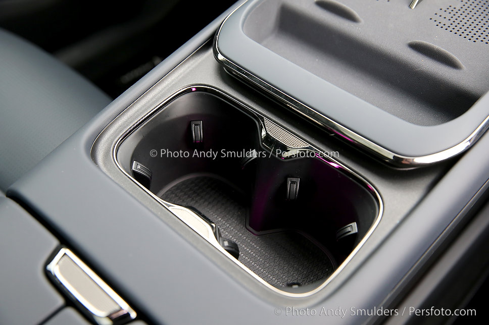 16-12-2025 VOYAH COURAGE RWD Business Edition E-SUV De Voyah Courage RDW Business Edition is een luxe elektrische SUV met achterwielaandrijving (RWD) en 292 pk, die concurreert met modellen als de Tesla Model Y, Hyundai IONIQ 5 en Kia EV6. Op de foto het Interieur van de auto en de bekerhouder. Copyrights Foto Andy Smulders / Persfoto.com