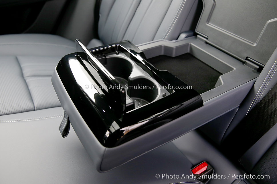 16-12-2025 VOYAH COURAGE RWD Business Edition E-SUV De Voyah Courage RDW Business Edition is een luxe elektrische SUV met achterwielaandrijving (RWD) en 292 pk, die concurreert met modellen als de Tesla Model Y, Hyundai IONIQ 5 en Kia EV6. Op de foto het Interieur van de auto met de achterbank en armsteun met bekerhouder. Copyrights Foto Andy Smulders / Persfoto.com