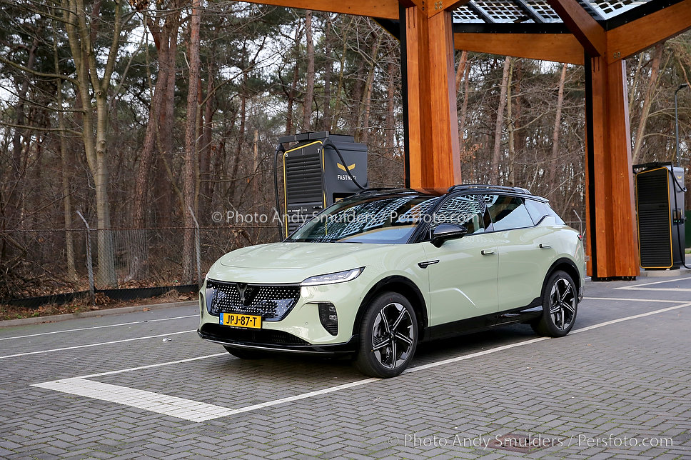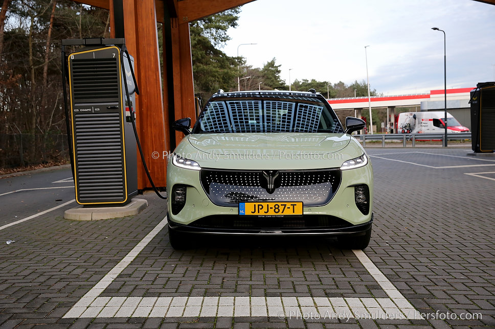16-12-2025 VOYAH COURAGE RWD Business Edition E-SUV De Voyah Courage RDW Business Edition is een luxe elektrische SUV met achterwielaandrijving (RWD) en 292 pk, die concurreert met modellen als de Tesla Model Y, Hyundai IONIQ 5 en Kia EV6. Op de foto een man aan het snelladen bij Fastned snellaad station Galgeveld langs de A27. Copyrights Foto Andy Smulders / Persfoto.com
