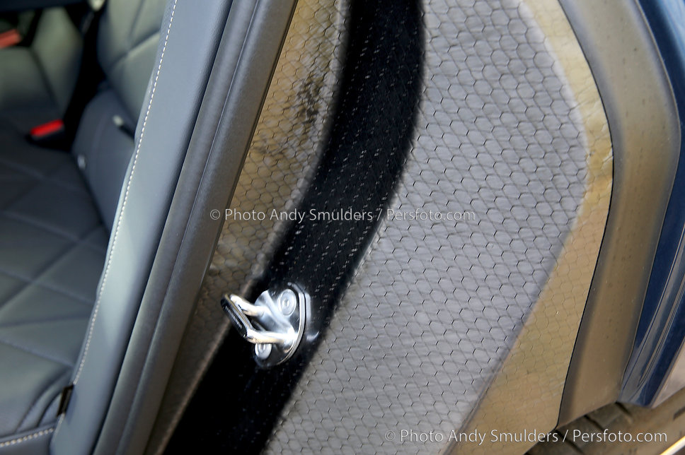 De onderzijde van de B-stijl, bekleed met leer, raakte beschadigd. Of ikzelf of een BMW-monteur is ergens achter is blijven hangen laten we in het midden. Had BMW hier hard plastic kunnen gebruiken? Ja. Zou dat afbreuk doen aan het interieur? Ik denk het wel. Hedin BMW Tilburg loste het keurig op, ik betaalde het onderdeel € 205,- incl. btw, montage verzorgd door de dealer. Prima. Zie het witte plekje op de B Stijl op de foto hieronder.