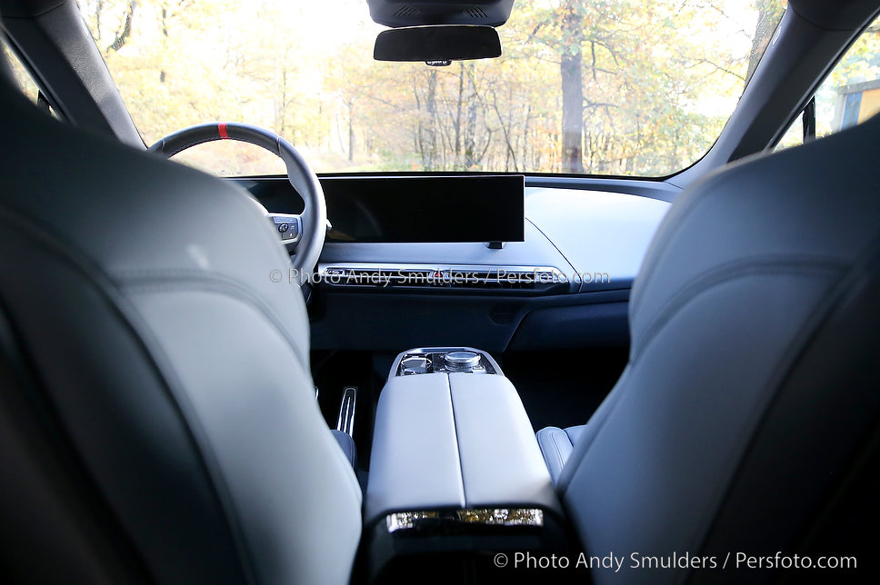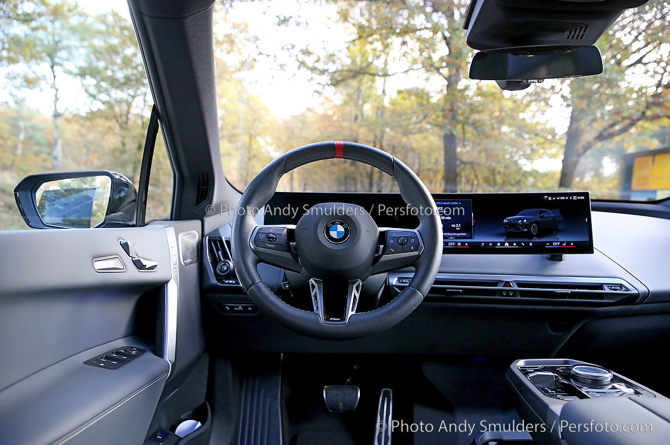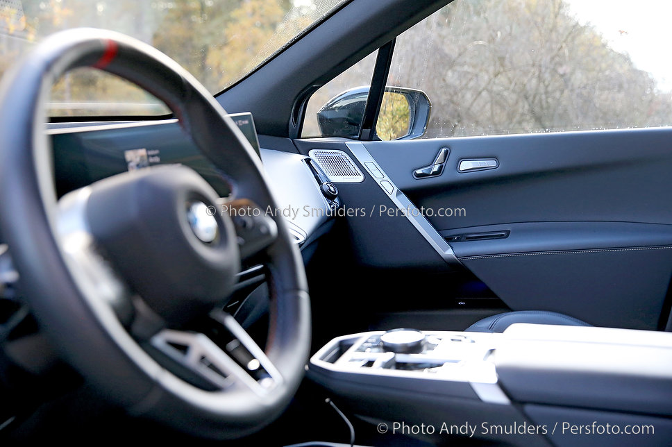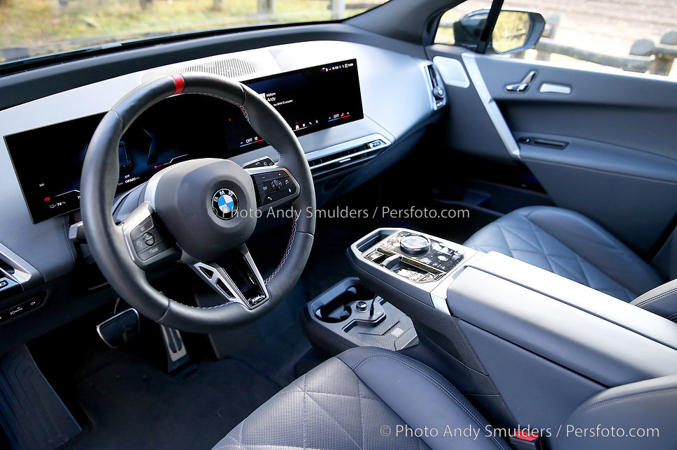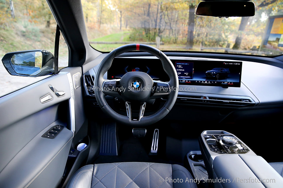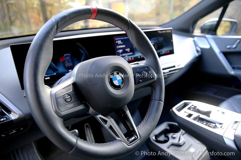 05-11-2025 BMW IX M70 XDRIVE De BMW iX M70 xDrive is een krachtige, volledig elektrische SUV die sportiviteit en luxe combineert. Op de foto interieur van de BMW met het M stuur en de verbeterde stoelen. Copyrights Foto Andy Smulders / Persfoto.com