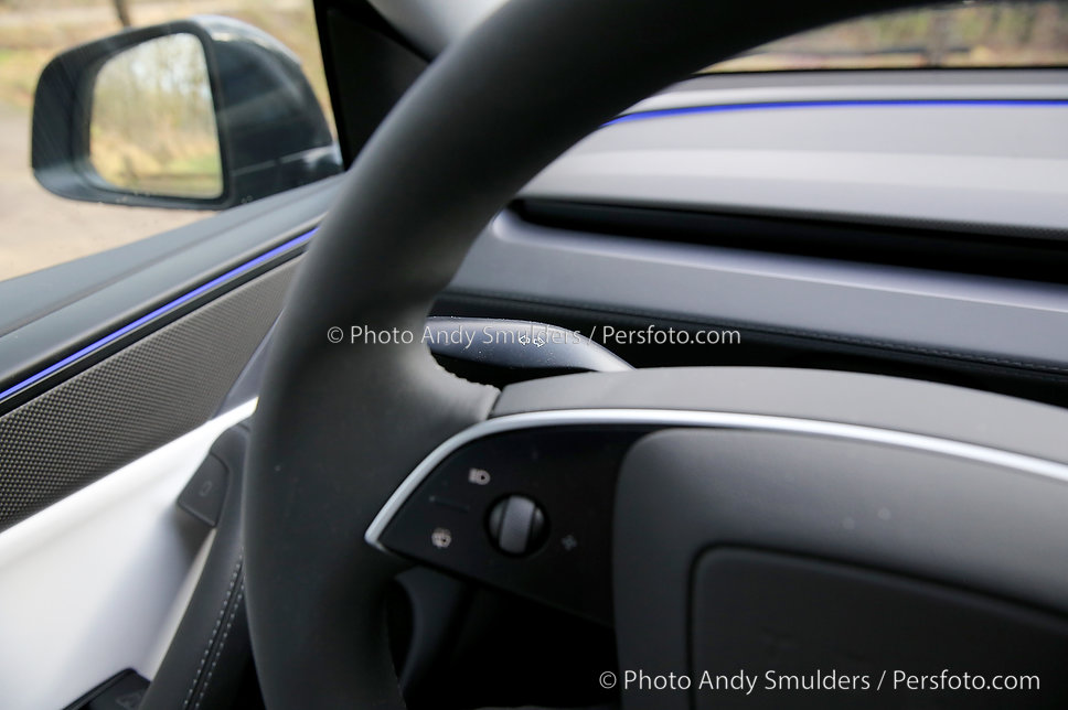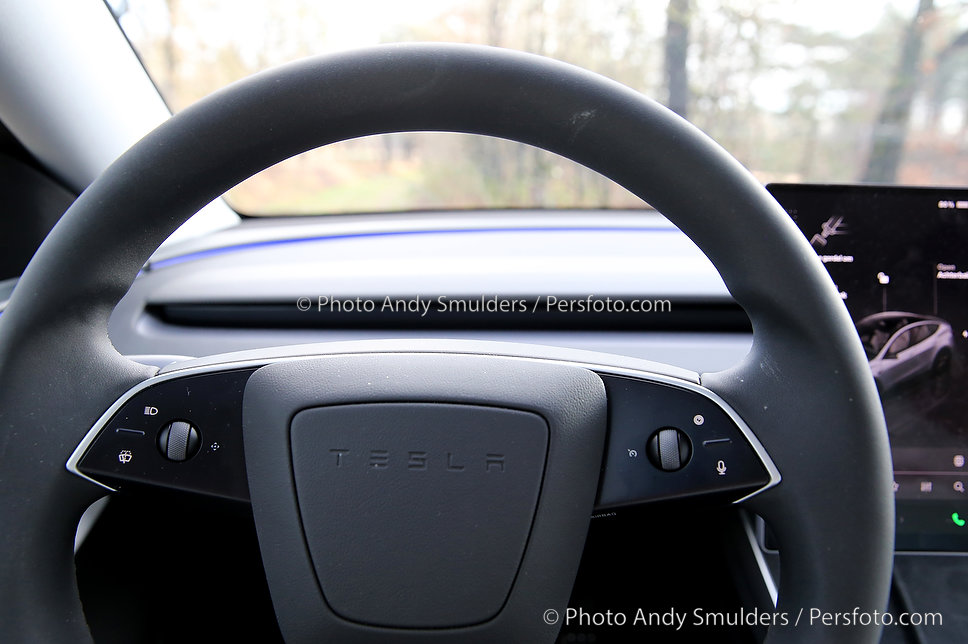 Een welkome en zeer praktische terugkeer is de richtingaanwijzer stalk. Tesla experimenteerde met richtingaanwijzers op het stuur, maar eerlijk is eerlijk, dat had naar mijn mening nooit een toegevoegde waarde, vooral niet op rotondes. Met de stalk weer op zijn vertrouwde plek is de bediening intuïtiever en veiliger.