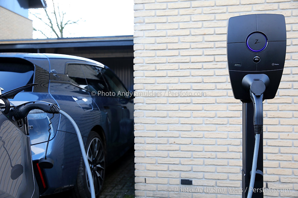 14-01-2026 TESLA MODEL Y JUNIPER PERFORMANCE Een sportieve, elektrische SUV met strakke, aerodynamische lijnen en een moderne uitstraling. De Tesla aan een openbare of thuis lader van Zaptec. Copyrights Foto Andy Smulders / Persfoto.com
