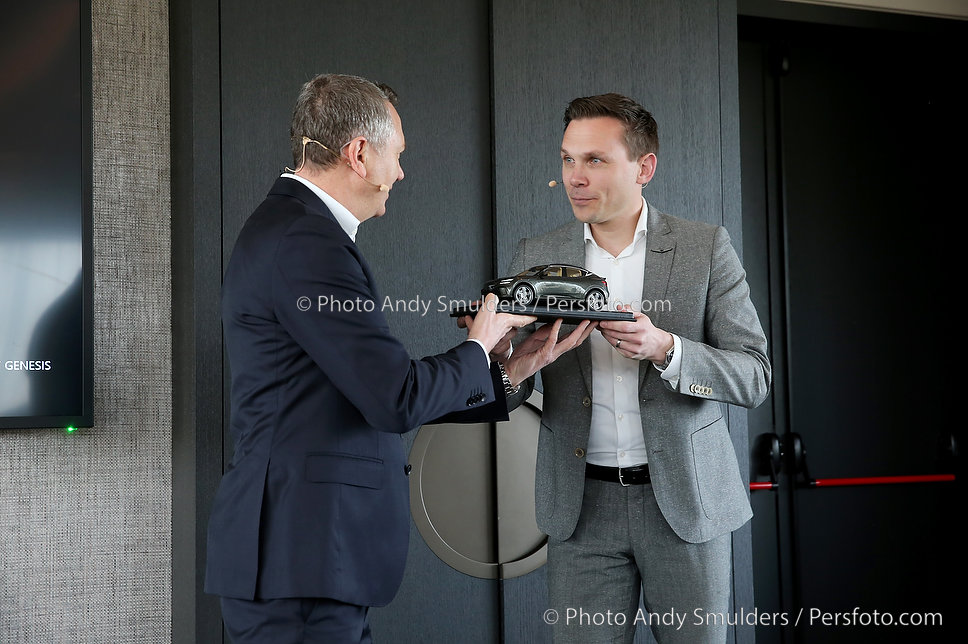Vervolgens nam Peter Kromschnabl het woord, waarna hij samen met Peter Lammers symbolisch de eerste Genesis overhandigde in de vorm van een schaalmodel, een tastbaar startschot voor de Nederlandse marktintroductie.
