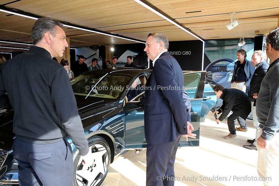 Er komen 3 EV modellen op de markt de GV60, GV70 en de G80. Op de foto Rechts Cyril Abiteboul, Team Principal Genesis Magma Racing en Links Peter Kromschnabi Managing Director Genesis Europe. Copyrights Foto Andy Smulders / Persfoto.com